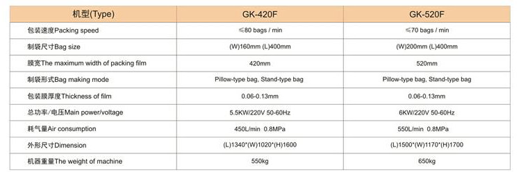 GK-420F/520F插角自立袋包装机